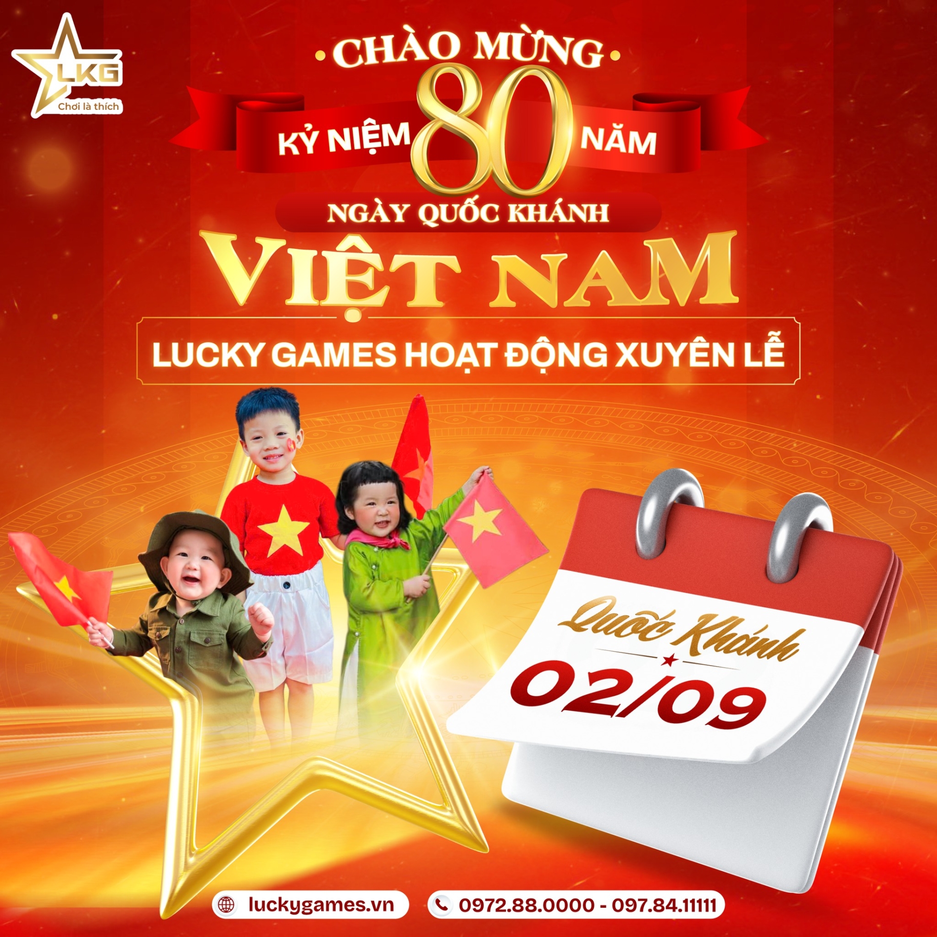 Dịp lễ Quốc khánh này, Lucky Games vẫn hoạt động xuyên suốt, sẵn sàng mang đến cho ba mẹ và các bé:
