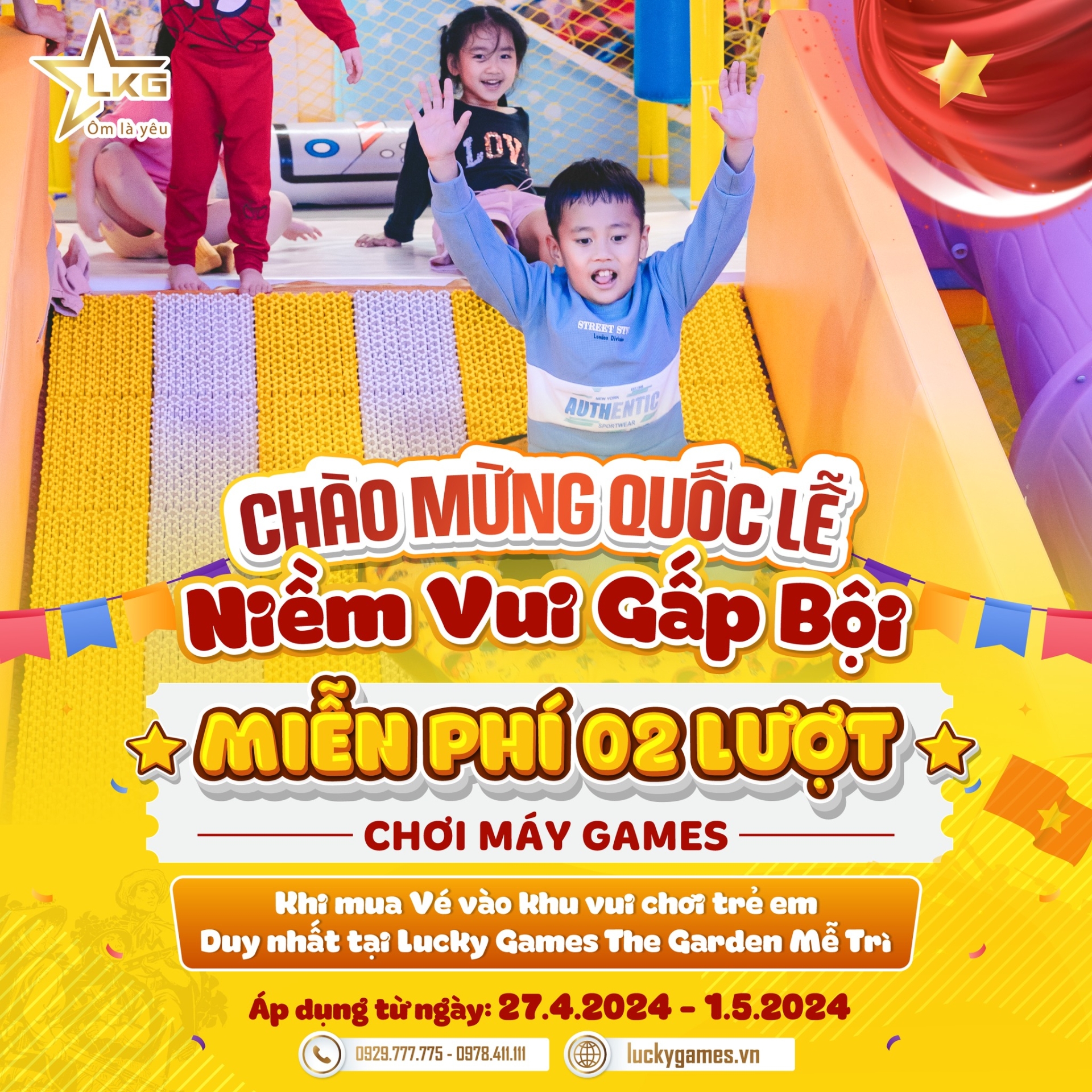 MIỄN PHÍ 02 LƯỢT chơi máy games, DUY NHẤT tại Khu vui chơi trẻ em Lucky Games The Garden Mễ Trì