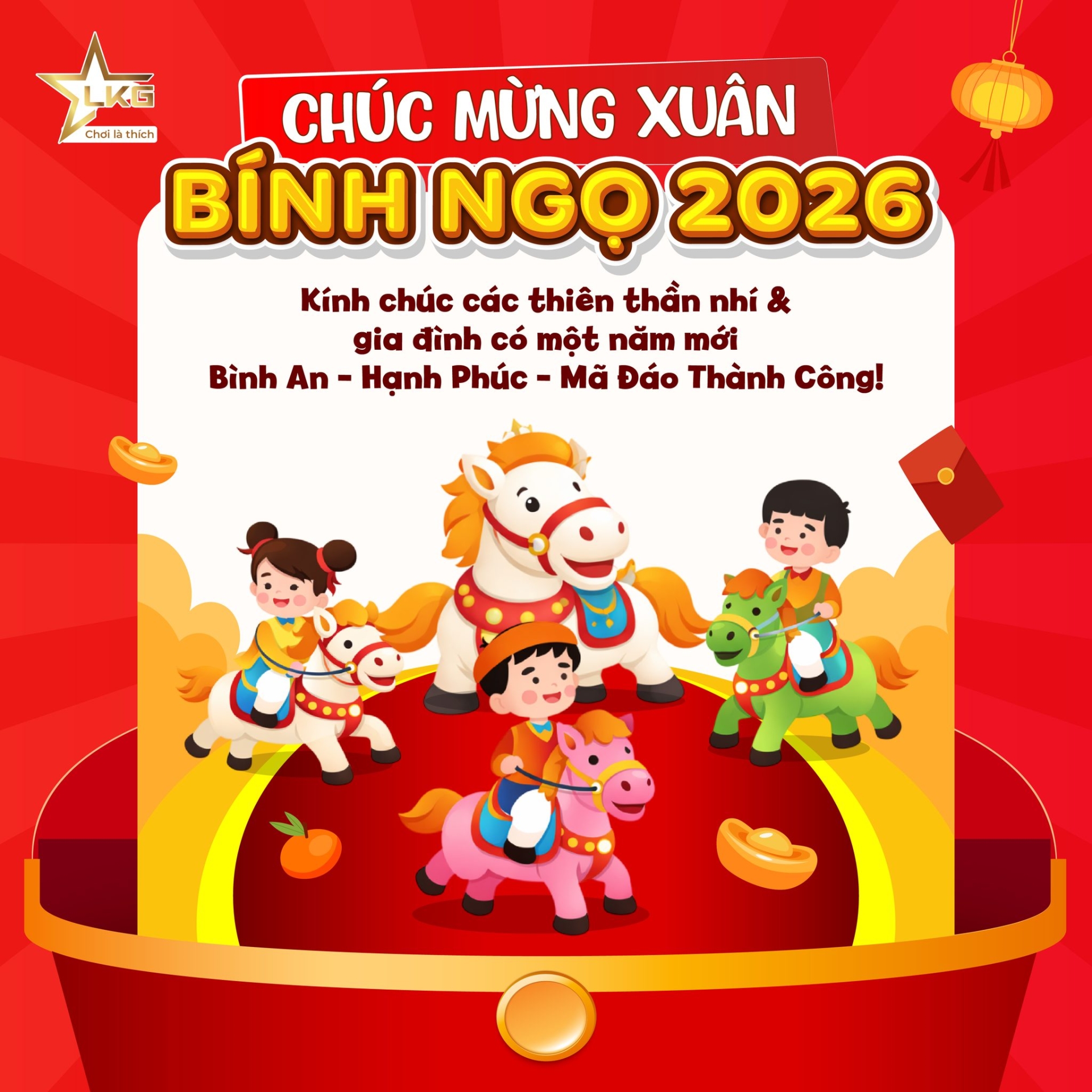 Chúc các cháu nhỏ và gia đình năm Bính Ngọ rực rỡ với thật nhiều may mắn, sức khỏe và luôn ủng hộ Lucky Games trong năm mới. Lucky Games đã sẵn sàng cho cuộc hẹn đầu xuân hứng khởi, ghé chi nhánh gần nhất để trao nhau câu chúc yêu thương nhé!