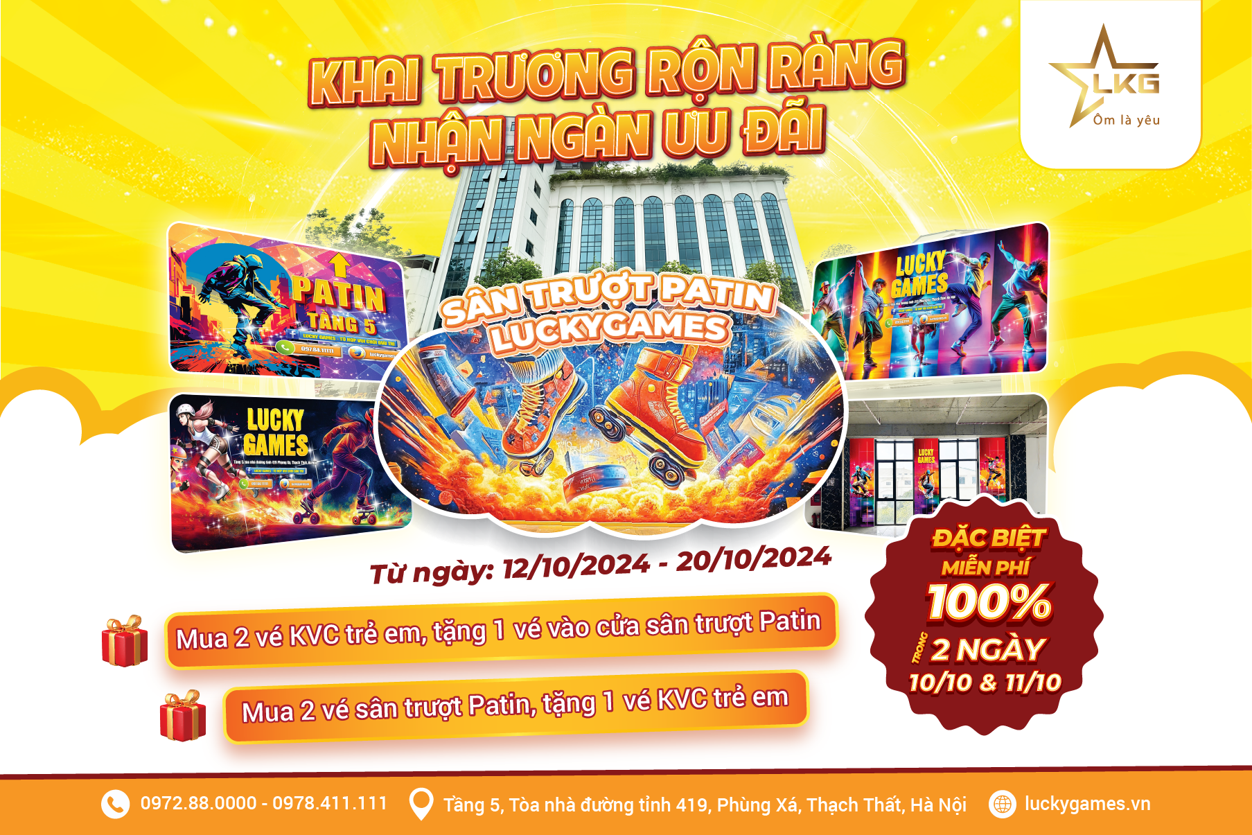 Hòa chung không khí Khai trương Sân trượt Patin lớn nhất khu vực phía Tây Hà Nội, Lucky Games Thạch Thất dành tặng Quý khách hàng Chương trình Ưu đãi đặc biệt: