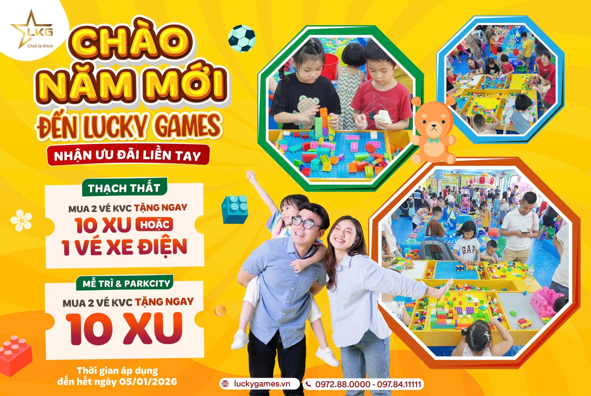 Chào năm mới 2026 với thật nhiều niềm vui, năng lượng tích cực. Trong kỳ nghỉ lễ này, ba mẹ hãy dành thời gian đưa bé đến Lucky Games để vui chơi, vận động và tận hưởng những khoảnh khắc thật ý nghĩa bên gia đình