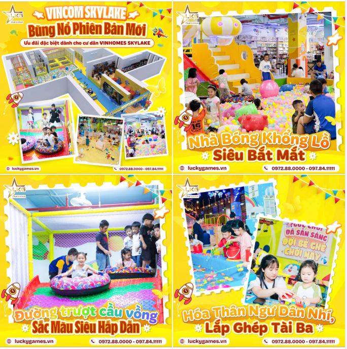 Còn chờ gì nữa? Ghé ngay Khu vui chơi trẻ em Lucky Games Vincom Skylake để khám phá diện mạo mới cực bùng nổ nha!
